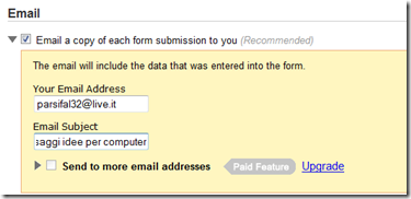 Nella seconda opzione scegliamo di ricevere una copia per email del messaggio inviato e l'oggetto della mail per capire subito a cosa si riferisce