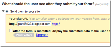 Finita questa prima parte andiamo in basso a destra su Save e Continue to Step 2. Nella prima opzione scegliamo che chi ci ha inviato il messaggio ritorni nella home del nostro blog quindi ne inseriamo l'URL.