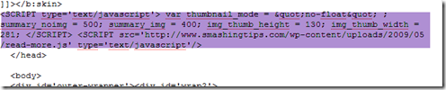 <b:else/><DIV expr:id='"summary" + data:post.id'><p><data:post.body/></p></DIV> <SCRIPT type='text/javascript'>createSummaryAndThumb("summary<data:post.id/>");</SCRIPT> <div style='clear: both;'/> <div style='border:0px;padding-top:5px;;float:right;text-align:right;'><span class='readon'><a expr:href='data:post.url' rel='bookmark'><img src=’http://tinyurl.com/ou439a’/></a></span></div>