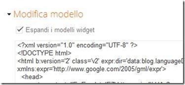 backup-ripristino modelloSe la modifica non andasse a buon fine si va su Scegli file, si seleziona il file XML, di cui si è appena fatto il download, e si clicca su Carica per ripristinarlo. Si va adesso sulla riga sottostante Modello > Modifica modello e si mette la spunta a Espandi i modelli widget