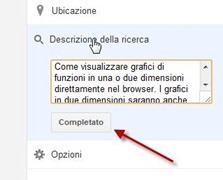 Si va su Completato prima di pubblicare l'articolo. Se adesso condividessimo il post su Google Plus potremo vedere tale descrizione subito sotto al link del Titolo del post. Nei template in cui questa personalizzazione non funziona non è presente questa riga