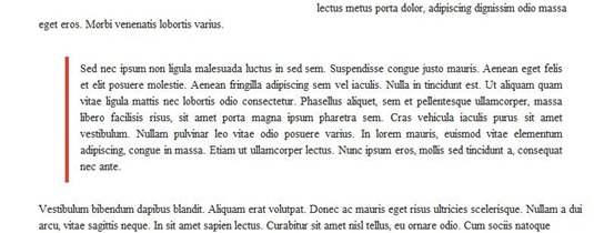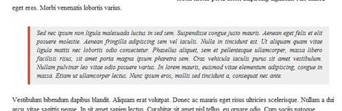 con un bordo sinistro colorato molto di moda nei nuovi template. Si possono modificare i parametri relativi a margin (distanze esterne) e al padding (distanze interne). Ricordo che il primo numero si riferisce alla distanza dalla parte alta e a seguire in senso orario. Il rientro sulla sinistra è in questo caso di 35 pixel. Si può anche modificare il colore del bordo (D84938) così come la sua dimensione (5 pixel).