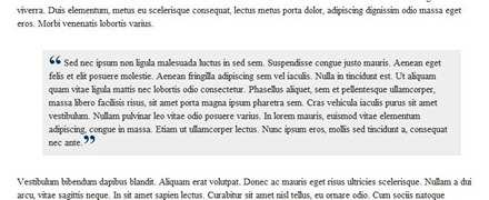dove possono essere modificate le immagini di inizio e fine citazione sostituendone gli URL. Si può anche fare a meno di inserire immagini e usare i tag after e before con questa struttura