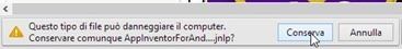 che fa iniziare il download di una applicazione java. Dovremo andare su Conserva per poi farci sopra un doppio click. Si aprirà una schermata che però non sarà una scheda del browser