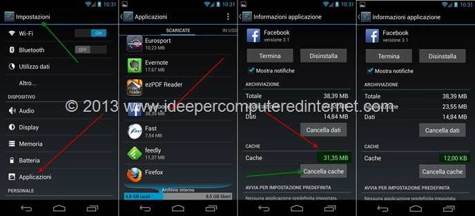 COME CANCELLARE LA CACHE DI UNA APPLICAZIONE ANDROID