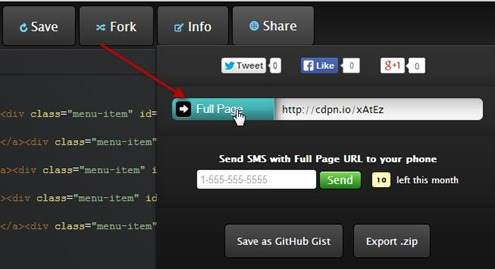 Per avere il link della sola Demo senza codice bisogna cliccare su Share > Full Page.