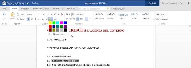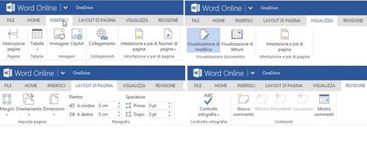 Per quello che riguarda la modifica di un file Word, oltre alla scheda Home con tutte le principali opzioni di formattazione sono presenti anche le schede Inserisci, Layout di pagina, Visualizza e Revisione