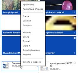Gli elementi possono anche essere gestiti a gruppi selezionandoli per poi andare in alto su Gestisci. Concludo mostrando l'interfaccia grafica per creare un foglio Excel e una presentazione PowerPoint