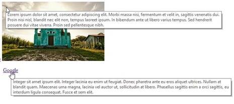 Quando si ha la necessità di inserire una lunga descrizione per una immagine o per un link il tooltip prenderà in larghezza tutto lo spazio del layout sia nel caso dei link sia in quello delle immagini