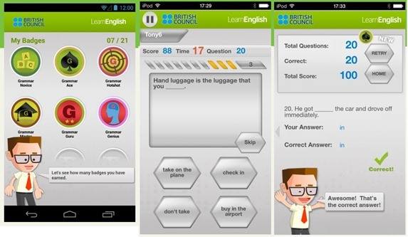 Johnny Grammar's Word Challenge è anche questa una risorsa a cura del British Council con una applicazione che mette alla prova l'ortografia, la grammatica e il vocabolario con più domande da risolvere nel tempo di 60 secondi. Ci sono tre livelli di difficoltà con 10 argomenti diversi tra cui Food & Resttaurants e Hobby. Si può competer con gli altri utenti per la classifica complessiva.