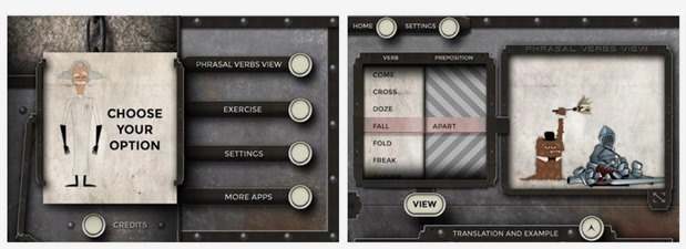 Phrasalstein è una applicazione creata per migliorare l'uso dei verbi creata dalla Università di Cambridge. È stata progettata come fosse un film horror e dispone di 100 verbi di cui potrete capirne l'uso attraverso delle animazioni divertenti. Le frasi di esempio saranno tradotte in spagnolo, tedesco, italiano, russo e francese.