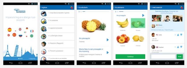 Busuu è una applicazione che supporta inglese, tedesco, spagnolo, italiano, giapponese, portoghese, russo, turco, arabo, cinese e polacco. Si tratta di qualcosa di simile a un social network disponibile per Android e per iOS e è inquadrato nelle linee guida europee per l'apprendimento delle lingue. Le lezioni vanno da principiante a avanzato con più di 150 argomenti e con più di 3000 parole. La versione gratuita offre però solo 20 unità.