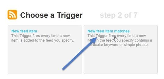 e nella finestra successiva dobbiamo selezionare New feed item with matches