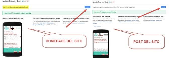 Per completezza è opportuno testare la homepage e almeno un post del blog. Se il risultato sarà positivo visualizzerete la scritta verde Awesome! This page is mobile-friendly. In caso di problemi potete sempre accedere alla pagina Mobile-Friendly Websites per migliorare la performance.