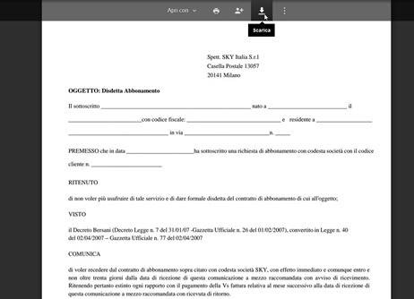 tramite raccomandata con ricevuta di ritorno. Al modulo va allegata una fotocopia di un nostro documento di identità. Per facilitare l'invio della disdetta a Sky ho postato su DropBox