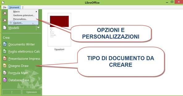 In alto nel menù File si possono aprire documenti anche creati con Office della Microsoft mentre su Strumenti si possono personalizzare le nostre preferenze e configurare una gran quantità di opzioni. Contrariamente a Office della Microsoft dove ciascun programma è indipendente nel senso che si può installare per esempio Word e Powerpoint ma non Excel o Acces, su Libre Office tutti i programmi alternativi a questi ultimi sono accessibili dalla homepage cliccando sulla sinistra.