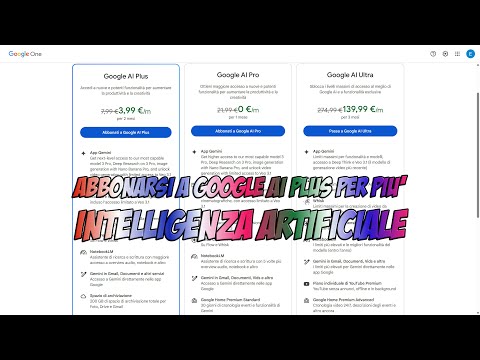Guida per attivare gli abbonamenti a Google AI Plus, Pro e Ultra per avere più funzionalità di intelligenza artificiale. Nel video si mostra come abbonarsi a Google AI Plus, il piano meno costoso e attivare altre funzioni di Google One come lo spazio di archiviazione a 200GB.